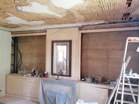 - démolitions, curage, dépose des pare-vapeurs existants pour une bonne capacité de séchage des murs
